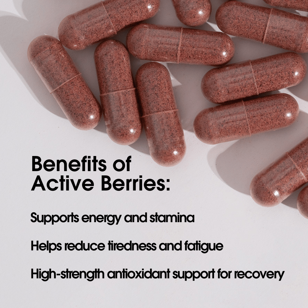 Each packet of Active Berries contains 60 capsules which equals 30 daily servings of 2 capsules.