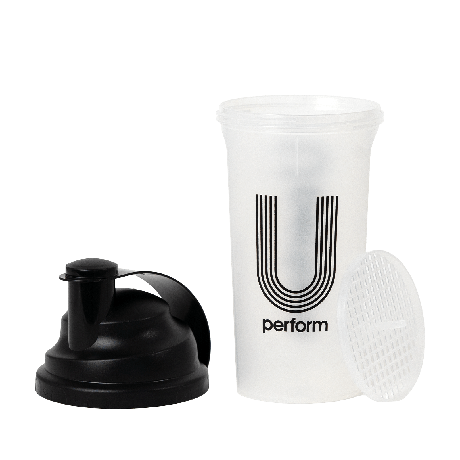 Our shaker bottle comes complete with the U Perform logo printed in two versions on the side and matching black lid, this shaker bottle is a must have for the convenient consumption of your U Perform supplements, especially our Active Whey & Collagen.